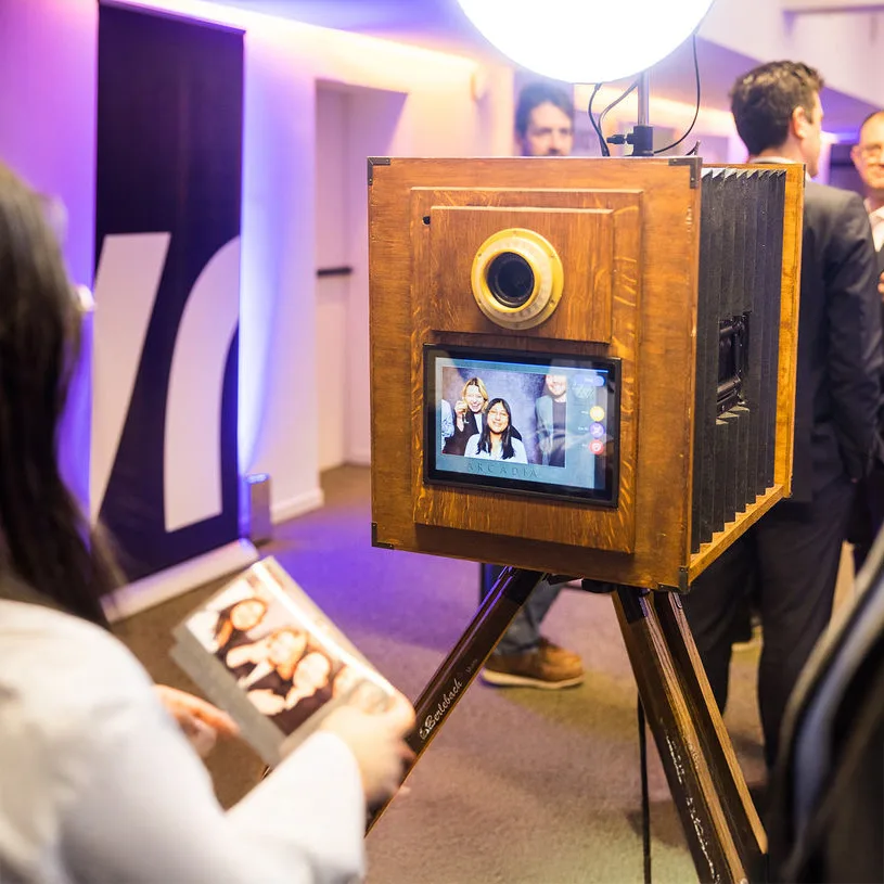 De Klikbox Retro is ons pronkstuk. Het ontwerp is gebaseerd op de oude balgcamera’s op een houten driepoot. Maar vergis je niet, hij ziet er misschien wel ouderwets uit, maar zit boordevol moderne technologie. Dit vintage toestel wordt de eye-cather op jouw feest of evenement!